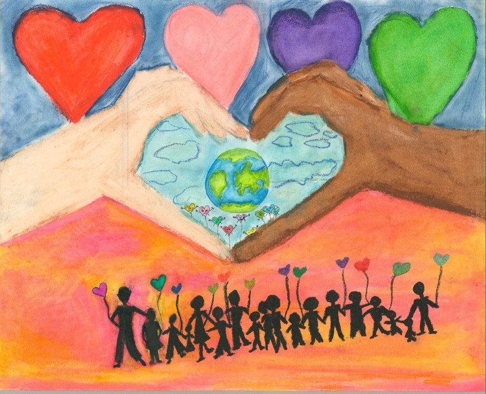 Und uns vorstellen, wie über 600.000 Kinder aus 70 Ländern weltweit ihre Vision zum Thema Frieden vermitteln