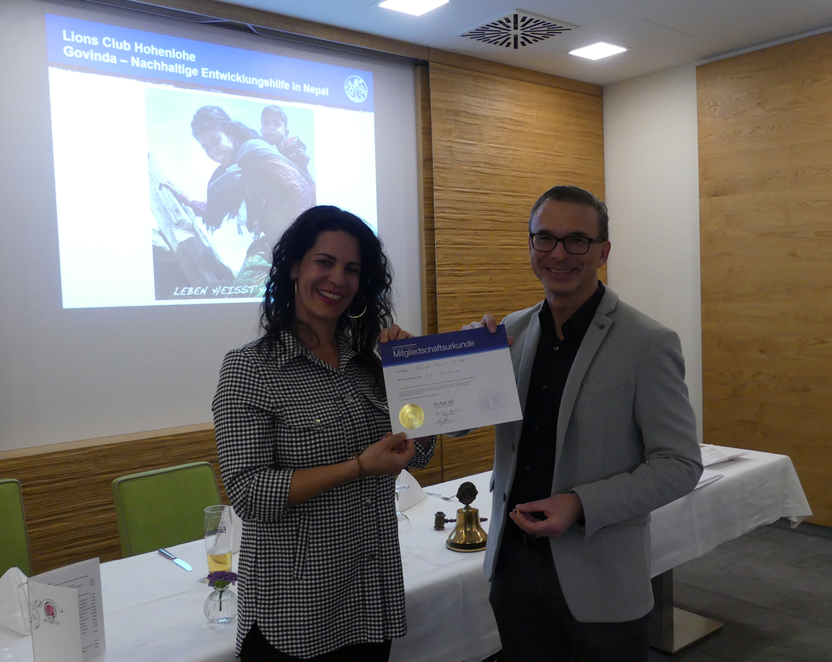 Sarah Hank-Paidar ist angetreten, um die Ziele des Serviceclubs tatkräftig zu unterstützen. Das Clubleben wird mit jedem neuen Mitglied reicher und interessanter. Für die vielfältigen Aufgaben und Tätigkeitsfelder im Club ist eine weitere Person eine zusätzliche Motivation, um bei der Servicearbeit immer stark engagiert zu sein und zu bleiben.
