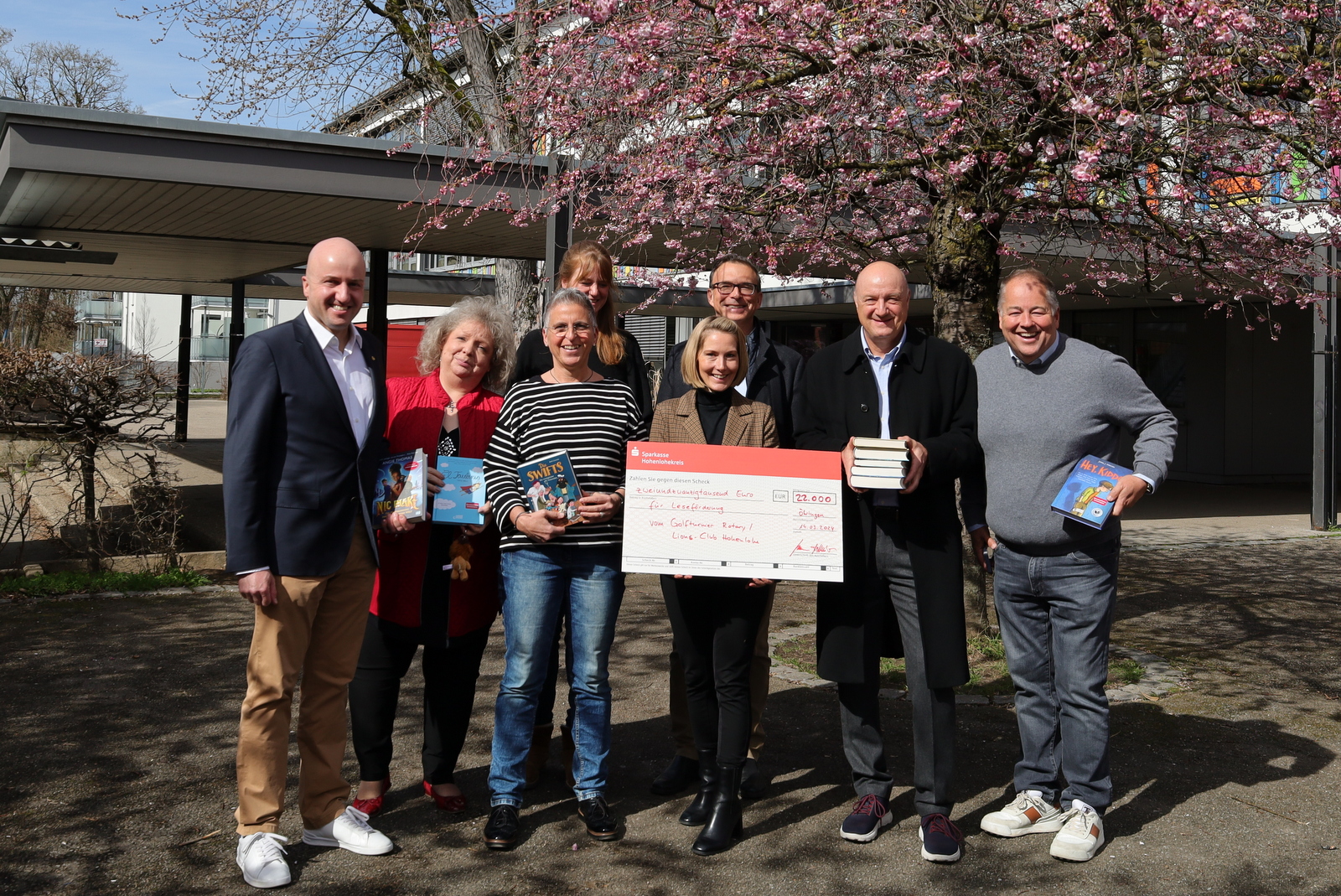 Mitte März überreichten die beiden Hohenloher Serviceclubs Rotary Künzelsau-Öhringen und Lions Culb Hohenlohe einen Scheck über 22.000 für die Leseförderung an Öhringer Schulen.